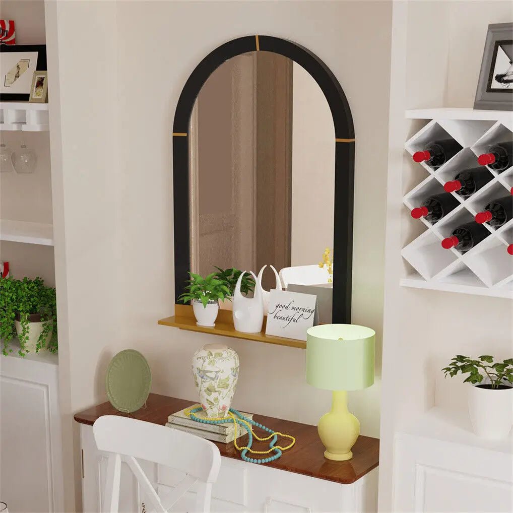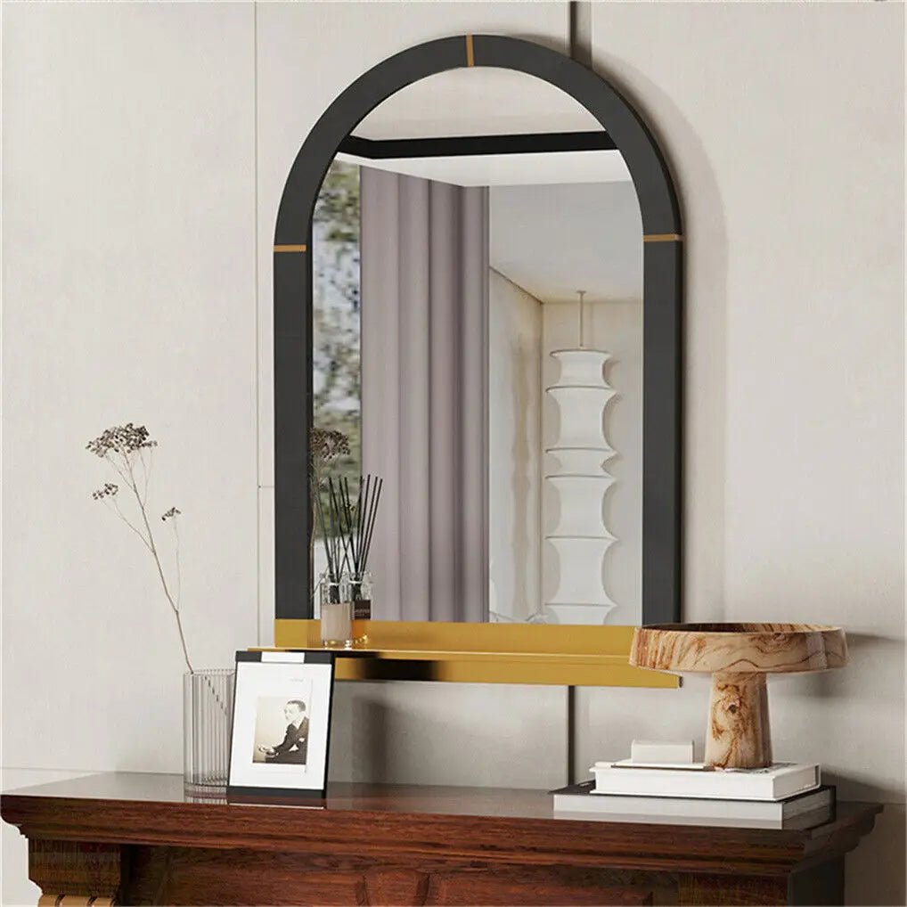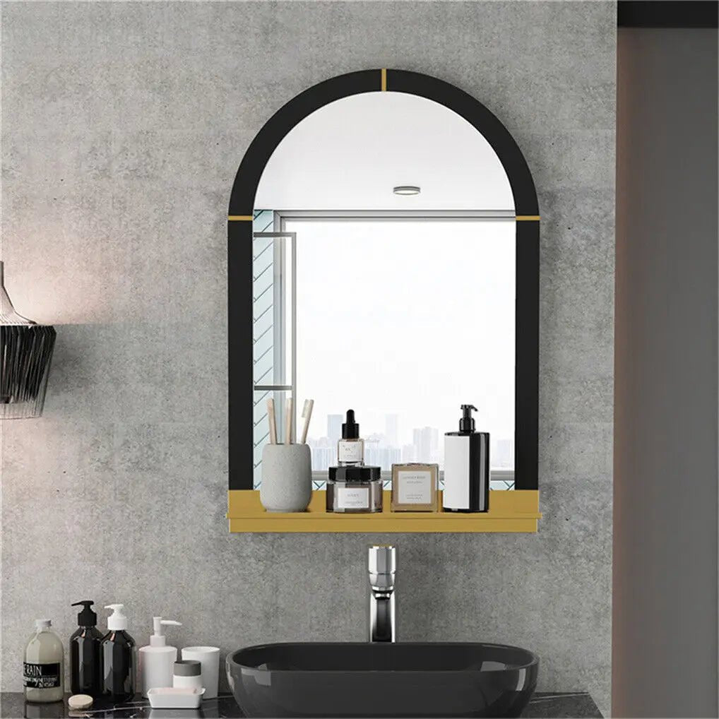 Miroir mural ANTIQUE avec étagère dorée - Design arqué sophistiqué