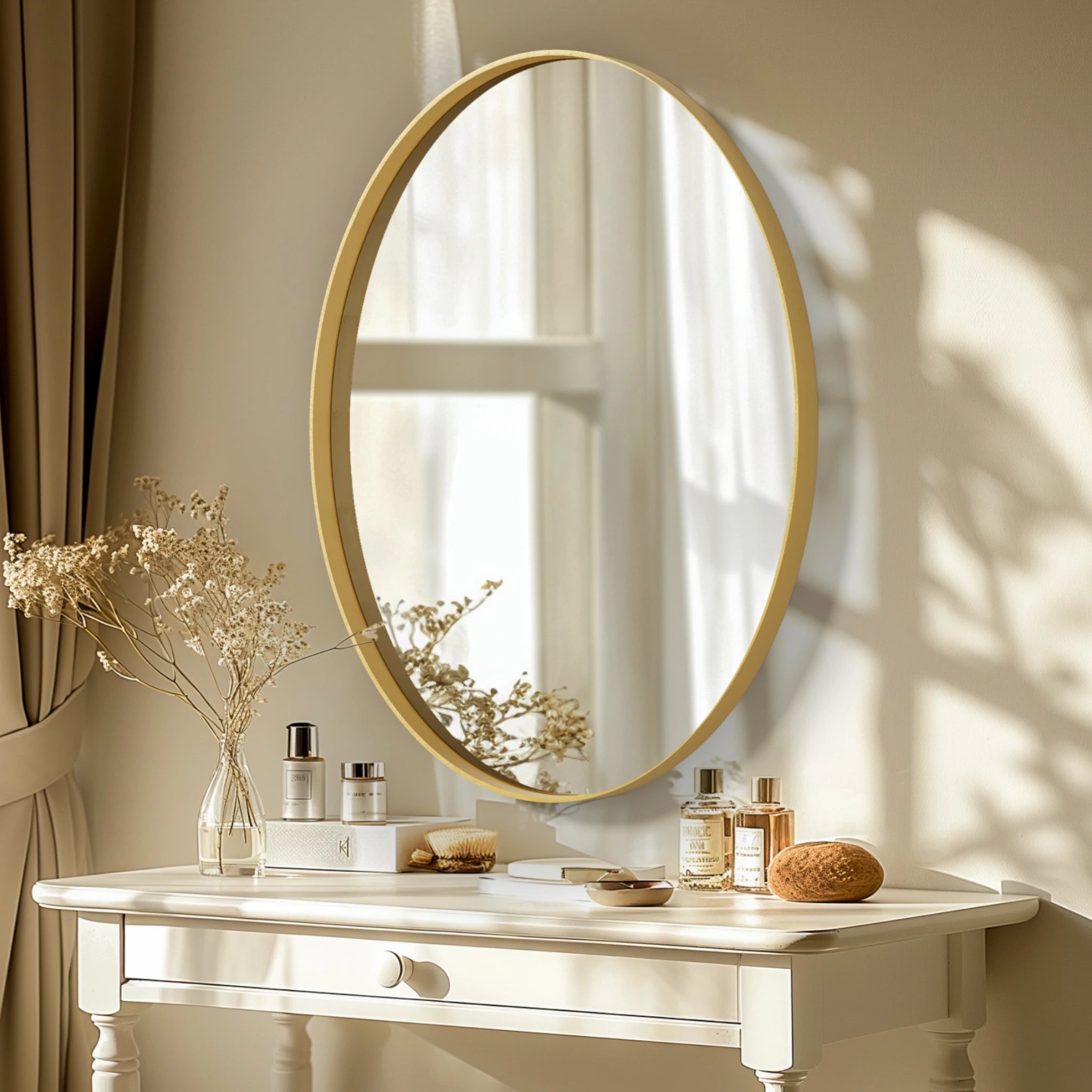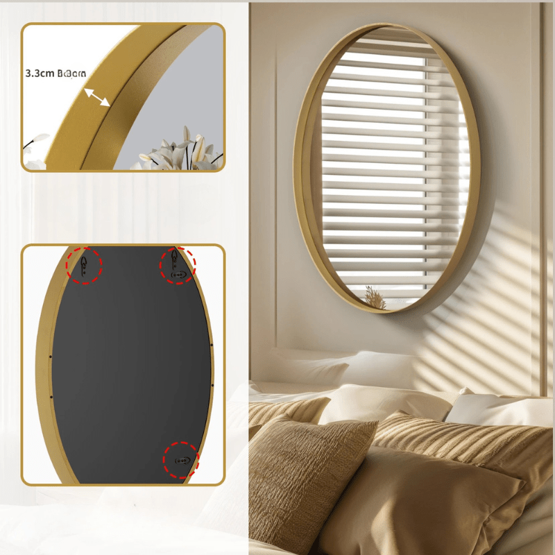 Miroir Mural CONTEMPORAIN – Élégance Ovale & Finition Dorée Brossée