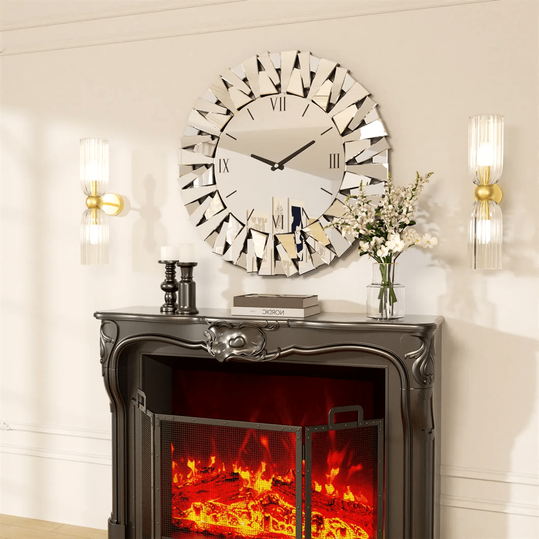 Apportez une touche de luxe éclatante à votre intérieur avec le miroir mural HOSTE, une horloge miroir stéréoscopique au design inspiré du soleil levant. Véritable œuvre d'art murale, ce miroir sublime salons, chambres, couloirs, bureaux ou hôtels grâce à son effet tridimensionnel unique créé par un placage miroir irrégulier.