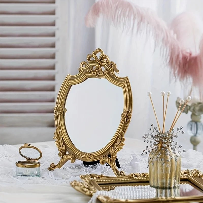 Un miroir doré au style vintage intemporel. Parfait pour une coiffeuse, une chambre ou une entrée, ce miroir décoratif sublime votre intérieur grâce à son cadre travaillé en résine de bois, alliant légèreté, robustesse et finition élégante.
